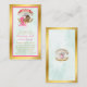 Schlafende Baby Meerjungfrau in einer goldenen Muschel, umgeben von Perlen. Rosa Schwanz Fin und Gold & rosa Tiara. Banner auf Muschel lautet "Wertvoll". Minzer Hintergrund.