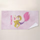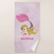 Rosa und goldfarbenes Mermaid Design Badetuch Set mit individualisierbarem Text.