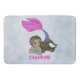 Blauer und rosa Resting Mermaid Design Badematte mit anpassbarem Text.