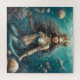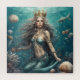 Meerjungfrau mit Muschelkrone im Meerwasser mit Seestern und Fisch