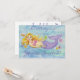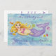 Hübsche Meerjungfrau, umgeben von Muscheln, Seestern und Quallen, lädt zu einer Geburtstagsparty ein.
