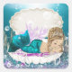 Meerjungfrau Babyduschaufkleber mit einer hübschen blonden Meerjungfrau mit einer Tiara und Perlen auf hübschem aquamarinem Blau und lila unter dem Meeresgrund. Sie können Text hinzufügen, um diese niedlichen blonden Babyduschaufkleber zu personalisieren.