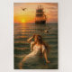 Mermaid Looking At Sailing Ship At Sunset Puzzle