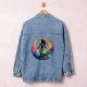Add good vibes and ocean energy to your outfit with this Moon Goddess design featuring an enchanting mermaid silhouette sitting inside of a colorful scaled moon. This vibrant graphic print denim jacket is ideal for beach lovers and salty souls.