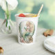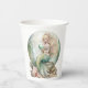 Mermaid Paper Cups - Eine wunderschöne, lang haarige Meerjungfrau, blassrosa Blume in ihren Haaren und auf ihrem Körper, ihr Schwanz besteht aus grünen und goldenen Schuppen, glitzernd im funkelnd Meer. Sie sitzt auf einem Felsen und hält einen großen grünen und weißen Korb. Was ist drinnen? Könnte eine Perle, ein Gold oder ein anderer geheimnisvoller Schatz sein. Auf der Rückseite ist das Schreiben - Dies ist mein Cup - mit Platz, um den Namen des Eigentümers im Party zu schreiben!