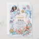Eine magische Geburtstagsfeier unter der Meeresszene mit Muscheln, Delphin, Korallen, Schildkröten und Seestern. Hübsche Wasserfarbe mit niedlicher Meerjungfrau. Erstellen Sie ein magisches skurriles Thema für eine Sommersaison Geburtstag, um für jedes Alter von 1-6 Jahren oder älter anpassen.