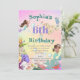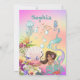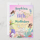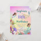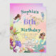 Eine Mermaid-persönliche Geburtstagseinladung im Alter von 6 Jahren mit einer Meerjungfrau mit dunklem Haar und anderen Unterwasserkreaturen. Ändern Sie einfach die Informationen für Ihr eigenes Geburtstagsgestalterdesign. Der Hintergrund hat eine Regenbogenfarbe.