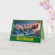 Ein Team von Meerjungfrauen mit Antlers zieht den Weihnachtsmann und seinen Schlitten durch den Himmel.