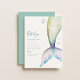 Meerjungfrau Schwanz Geburtstagseinladung. Aquarell Meerjungfrau Schwanz in den Farben Grün, lila und Blau des Meeres. Niedliche Blasen Akzente und die Koordination der Meeresschaum-Farbunterlage.