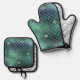 Mermaid Silver Aquamarin Green Ocean Glitz Ofenhandschuh & Topflappen-Set