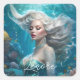 Mermaid Silver Hair Türkis Ozean Quadratischer Aufkleber