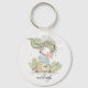 Eine magische Meerjungfrau und Seesterne illustrierte Schlüsselkette für Kinder. Blau-rosa und grüne Pastelltöne auf einem neutralen, weißen Hintergrund. Eine niedliche Möglichkeit für Kinder, ihre Schlüssel zu tragen.