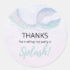 Feiern Sie Ihr Unterwasser-Abenteuer mit dieser zauberhaften Meerjungfrau unter dem Party Dankeschön an den klassischen Rundaufkleber! Dieser runde Aufkleber, der den Zauber des Ozeans zum Leben erweckt, zeichnet sich durch einen wunderschön pastellfarbenen Schwanz aus, der in Meeresgrün- und Rosatönen gehalten ist. Ideal für Gastgeschenke, ideal für jede Mermaid-Veranstaltung.