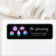 Dieses elegante und glamouröse Urlaubsadressen-Label besticht durch rosa und lila Mermaid Bauble-Ornamente auf schwarzem Hintergrund. Der Text kombiniert handgeschriebene Skripte mit modernen serifenlosen Schriftart für ein elegantes und raffiniertes Aussehen. Glitzern und Glitzer fügen eine festliche und magische Touch hinzu. Das ist perfekt für Weihnachten und die Ferienzeit.