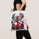 Ein ikonisches Bild von zwei Meerjungfrauen, die auf einem Anker ruhen. Lebhaft rot, weiß und blau mit rote Rosen. Machen Sie Ihre Tasche einzigartig, indem Sie Ihren persönlichen Namen in die Tasche. Ideal für ein individuelles Geschenk.
