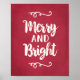 Merry und Bright Urlaub Wand Art Print / Poster bietet ein gebürstetes Skript Typografie-Design mit Scroll Akzente und rustikale rubinrote Hintergrundfarbe.