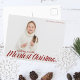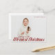 Ich wünsche dir frohe Weihnachten. Chic rote Kalligraphie über Ihr komplettes Familienfoto auf einem einfachen Foto Postkarte. Schöne minimalistische, aber festliche Postkarten.