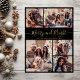 Moderne einfache Elegante Kalligrafie Merry und helle Script Black und Gold 5 Foto Collage Merry Weihnachtskarte. +++ BITTE BEACHTEN SIE, DIESE 6,5" X 8,75" GRÖSSENKARTEN SIND GRÖSSER ALS DER DURCHSCHNITT, WEGEN DER GRÖSSEREN KARTENGRÖSSE IST ES FAST SICHER, DASS DIE POSTENKOSTEN HÖHERER SIND. WENN SIE DIE STANDARD-12x18"-GRÖSSE VORziehen, KÖNNEN SIE DIE KARTE UNTER FOLGENDEM LINK FINDEN: https://www.zazzle.com/merry_and_bright_5_photo_collage_christmas_holiday_card-256539077584109451 ODER ABSCHALTEN, UND SIE FINDEN DIE 12x18 KARTE IN DER FOLGENDEN SAMMLUNG. +++ Diese festliche, minimalistische, whimsical 5 (5) Foto-Urlaubskarte bietet eine hübsche Gitter-Foto-Collage und sagt "Merry Hell"! Der Grußtext "Merry and Bright" ist in einer wunderschönen Hand geschrieben, in der Wirble Swash-Schwanz-Schriftart-Schrift in Gold auf schwarzem Hintergrund geschrieben wird. Auf der Rückseite mit Ihrer Grußbotschaft-Vorlage mit einem kleinen Herzdoodle auf weiß und einer horizontalen Bildvorlage. Hübsche Grußkarte für Ihre Familie und Freunde in der Weihnachtszeit.