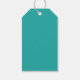 Cute and colorful holiday gift tags featuring the phrase "Merry + Bright" on the front in gold, turquoise, pink hand-lettering against a teal background. Cute Christmas light bulbs surround the text in hot pink and turquoise with gold-colored bases. Personalize the front of the modern holiday gift tags by adding your name in white text. The back features a solid turquoise background or color of your choice. Designed to coordinate with our Merry & Bright Christmas Lights holiday collection.