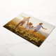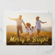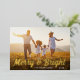 Moderne Urlaubskarte mit Ihrem Foto überlagert mit "Merry & Bright" in echter Goldfolie-Schrift.