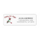 Niedliches Merry-Bright-Rücksendelabel mit handgemalten Ruby-throated Hummingbird mit einer Weihnachtsmannmütze.