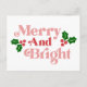 Merry and Bright - Klassische Holiday Typografie Postkarte