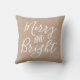 Einfache und helle Skripthandschrift | Holiday Throw Kissen in Kraft und weiß. Modernes Bauernhaus Typografie Design von BlackBerry Boulevard "Merry and Bright" geschrieben in einem Schriftart mit weißer Schrift auf einem kraftfarbigen Hintergrund. Andere Farben im Shop erhältlich. Perfektes akzentes Kissen für Ihre Wohngestaltung.
