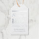 Elegante Silberfolien auf rustikalen Geschenketiketten. Merry & Bright wird in handgeschriebener Schrift und LED Neonlichtart Typografie geschrieben. Die Vorlage ist für Sie Set, um Ihr Zeichen, wie Liebe von oder warmen Wünschen, und Ihren Namen(en) hinzuzufügen.