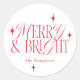 Festlich und einfach Weihnachten Gunst-Aufkleber mit klassischem Typografie-Text, der "Merry and Bright" mit Sternen sagt.