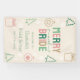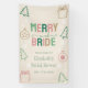 Merry and bride! Winter Christmas bridal shower with green trees, decorative ornaments and gift boxes against a neutral beige background accented with white snowflakes