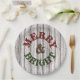 Merry & Bright auf wittertem Holzplanke-Muster Pappteller