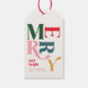 Celebrate a merry and bright Christmas! Spread the love of the season with a joyous gift tag. This design features a retro serif typography, bright, bold & vibrant colors and classic pinstripes.