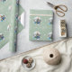 Modernes personalisiertes Weihnachtsgeschenkpapier. Die Vorlage ist für das Set bereit, damit Sie Ihr Lieblings-Foto und Ihren benutzerdefinierten Text hinzufügen können. Das Design hat einen Winterkranz mit der handgeschriebenen Formulierung "Merry and Bright" mit Sternen und Konfetti Punkte. Die Farbpalette ist ein zeitgenössisches Eukalyptusgrün und Silber. Bitte stöbern Sie in unserem Shop, um Weihnachtskarten, Geschenkverpackungen und Dekorationen zu kombinieren und zu koordinieren.