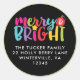 Merry & Bright farbenfrohe Weihnachtsansprache Runder Aufkleber