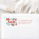 Das festliche Retourenlabel zeigt das Sprichwort "frry & bright" im modernen typografischen Set auf weißem Hintergrund. Es ist der perfekte Weg, um Freunden und Familie lassen, wo Sie während der Ferienzeit wohnen. Dieses Label ist sicher, um eine Touch von Urlaub zu Ihrem E-Mail-Fröhlichkeit hinzufügen und von jedem, der es sieht, bemerkt werden.