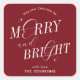 Merry & Bright Red Elegante Script Moderne Weihnac Quadratischer Aufkleber