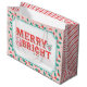 Diese Geschenktasche bietet einen fröhlichen Urlaub in einem modernen viktorianischen Stil Typografie auf einem rosa und roten heiligen Hintergrund.