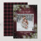 Basierend auf meinem Bestseller Winter Wedding Invitation Suite, dieses gemütliche Bordeauxholz Design Foto Weihnachtskarte mit "fröhlich & hell" in handgeschriebenen Drehbüchern, Ihrem Lieblings-Hochzeitsgeschenk-Foto, ist mit silbernen Glitzer-Schneeflocken und Aquarellkiefern verziert, und eine bordeauxrote und schwarze Büffel karierte Textur. Personalisieren Sie mit Ihrem Foto, Namen und Jahr. Bitte kontaktieren Sie Designer für passende Produkte oder Designvariationen und sehen Sie sich die Holiday Suite hier an: https://www.zazzle.com/collections/rustic_burgundy_silver_winter_plaid_wood_christmas-119954909896873769 Copyright Anastasia Surridge for Elegant Invites, alle Rechte vorbehalten.