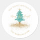 "Merry & Bright" Watercolor Tree Custom Name Runder Aufkleber