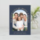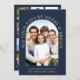 Moderne, dunkelblaue Weihnachtskarte mit ihrem Foto in einem Bogen-Rahmen, "May Your Days Be Merry & Bright" in eleganter Goldserf-Typografie und Ihrem Namen und einem saisonalen Gruß in einfacher Goldschrift. Die Rückseite zeigt ein Jahr in Review Foto Collage Ihrer Lieblings-Menschen und Momente aus dem letzten Jahr.