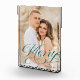 Eleganter Foto Block mit Ihrem vertikalen Foto mit "Merry" in einem grünen Kalligraphieüberlagerungen. Personalisieren Sie den Foto-Block, indem Sie unten Ihren Namen hinzufügen.
