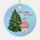 Der Whimsikische Elch hat Weihnachtsschmuck, Strümpfe und eine Uhr, die von seinen Geweihten hängt. Er trägt eine Weihnachtsmannmütze und einen rot-weiß gestreiften Schal. Neben ihm ist ein dekorierter Weihnachtsbaum und Weihnachtsgeschenke. Es ist alles Set vor einem blassblauen Hintergrund mit abfallenden Schneeflocken. Bildunterschrift lautet "Fröhlich Chris-Moose! Auf der Rückseite ist ein Polar-Bär in einem roten und grauen Pullover gekleidet, und ein roter Weihnachtshut, stehend neben einem Weihnachtsbaum. Auf dieser Seite steht "Und ein glückliches neues Jahr" Persönlich mit dem Jahr vorne und Sie haben einen festlichen, lustigen doppelseitigen Weihnachtsschmuck! Dies wäre ein großartiges Geschenk für einen Lehrer, Babysitter, Freunde oder Familie!