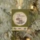 Merry ChrisMoose ist stehend in Kiefernbällen und Beeren vor einem Gingham Karo bräunlich. Typografie liest "Merry ChrisMoose" schwarz. Banner hat zwei Gruppen von Weihnachtskiefern und Beeren und das Jahr.