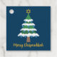 Dieses niedliche Gastgeschenk der Merry Chrismukkah beherbergt einen grünen Weihnachtsbaum, der mit blauen dreieligen Ornamenten geschmückt ist, und einen jüdischen David-Stern, der für Hanukkah an der Spitze steht, um die zwei Ferien für eine Familie zu kombinieren, die beides feiert.