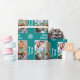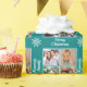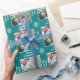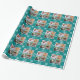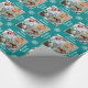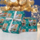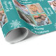 Merry Christmas 4 Photo Collage Family Name Teal Geschenkpapier