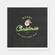 This image displays a "Merry Christmas and Happy New Year" greeting card with a striking and contrasting design. The deep black background highlights the word "Christmas," which is written large and bold in a bright, neon lime-green cursive style, accompanied by an illustration of a smiling Santa Claus head at the top. The overall design has a modern and festive feel, with essential red and green color accents for the celebration.