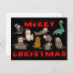 süßes Weihnachtsdesign mit witzigen Tieren , die sich in eine Lichterkette umgewickelt haben und eine Weihnachtsmütze tragen .