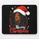 Merry Christmas Black African Girl Santa Hat Xmas Mousepad