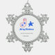 Merry Christmas blue star red stockings name date Schneeflocken Zinn-Ornament