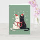 This sweet picture shows two cats wearing Santa hats on a soft green background. One cat is white, and the other is black, both looking happy and peaceful with their eyes closed and smiles. They are wrapped in red fairy lights and surrounded by snowflakes, dots, and a red heart sculpture, representing love and togetherness during the holiday season. The card says, "Merry Christmas! Wishing you happiness and love this holiday season." It's perfect for spreading holiday cheer with its warm colors and festive decorations 🎅🏼🎄🎁.